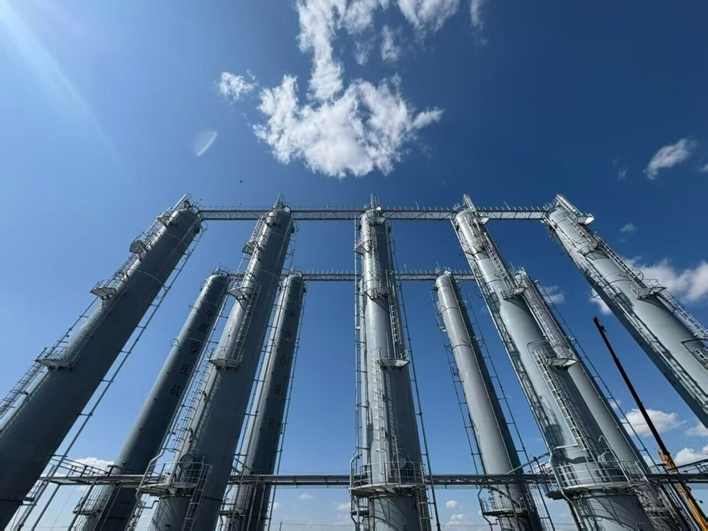 2025年12月10日,位于康保县的河北鸿蒙制氢工厂高压储氢罐。常嘉鑫摄
