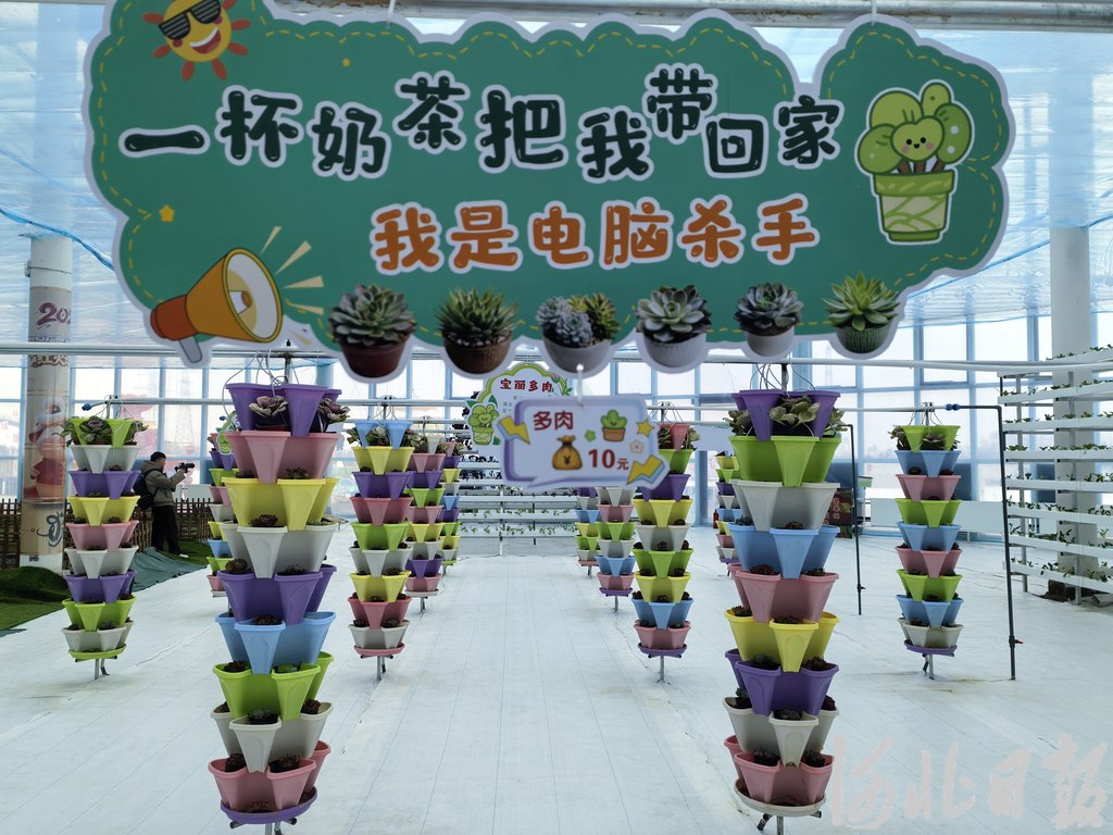 采风活动首站聚焦占地约50亩的农耕工坊。阳光房结构的工坊内,迎春花、仙客来等各色鲜花争相盛开;憨态可掬的多肉扎在一个个造型各异的花盆里展露着“倔强”的身姿;临窗处,一床床水培绿色蔬菜正悄然生长,静待着被摘下送往隔壁的药膳火锅里去感受“滚烫人生”。