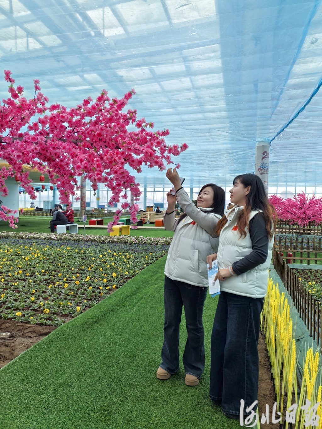 农耕工坊内,鲜红争相盛开。记者刘雅静摄