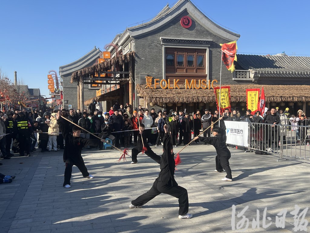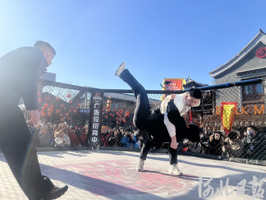 河北日报客户端1月10日讯(记者王雅楠)今天,“狮城荣耀·沧州擂”首场公开赛在沧州南川老街举行,来自全市的数十名武术爱好者齐聚一堂,以武会友,为观众带来一场精彩的视觉盛宴。