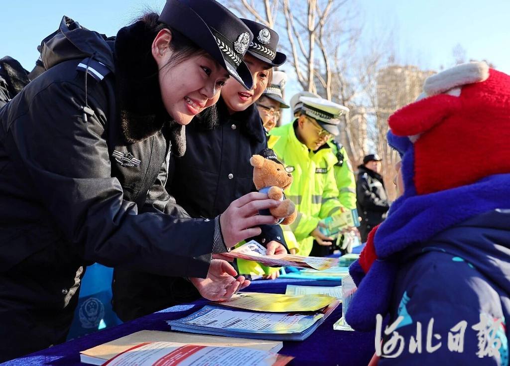 当天,也是全国第40个“110宣传日”。秦皇岛市公安局以“四十载守护平安,110勇毅前行”为主题,组织开展集中宣传活动。通过摆放宣传展板、发放宣传资料、现场讲解等方式,向群众介绍了接处警的工作职责、接警范围,耐心解答报警求助、治安防范等问题,提醒群众遇到紧急情况时保持冷静、清晰地提供关键信息,助力警方高效处置;还就反诈、禁毒、交通、网络安全等领域的相关法律知识进行宣传,提醒大家要提高安全防范能力和自我保护意识,共同营造安全稳定的社会治安环境。