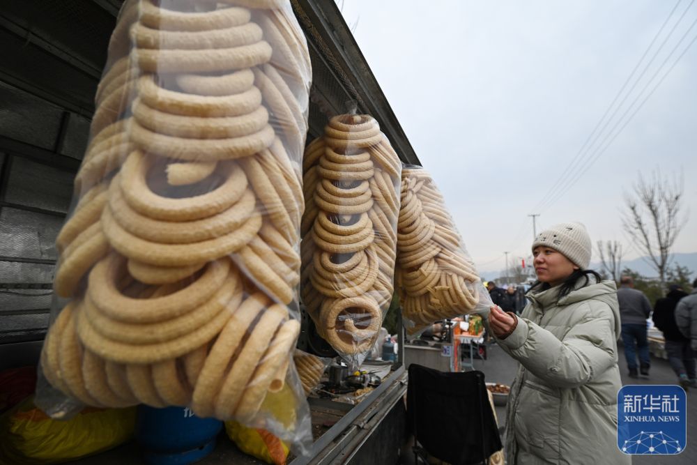 1月14日,一名女士在河北省元氏县南佐大集购买小吃。新华社发(张晓峰摄)