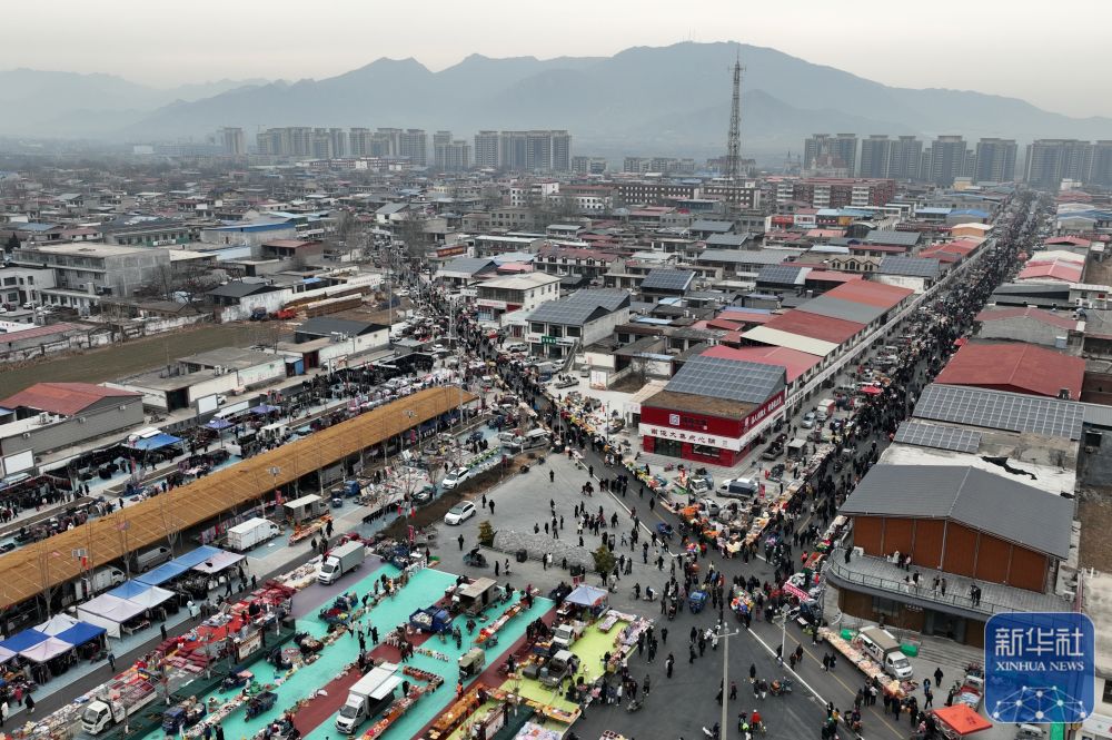 1月14日,人们在河北省元氏县南佐大集上选购商品(无人机照片)。新华社发(梁子栋摄)