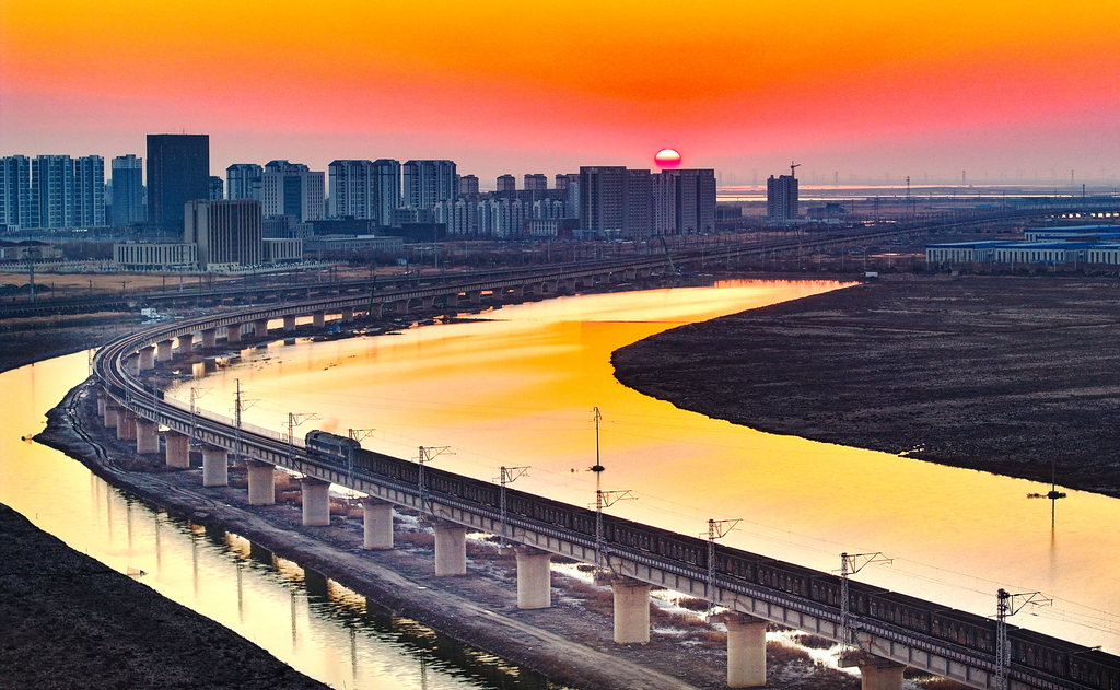 1月9日,一列检修完毕的列车行驶在铁道线上。