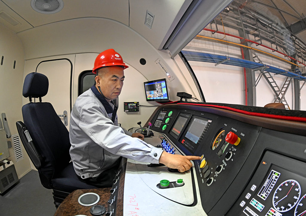 1月9日,工程师在机车驾驶室查看检修完成的电子设备。