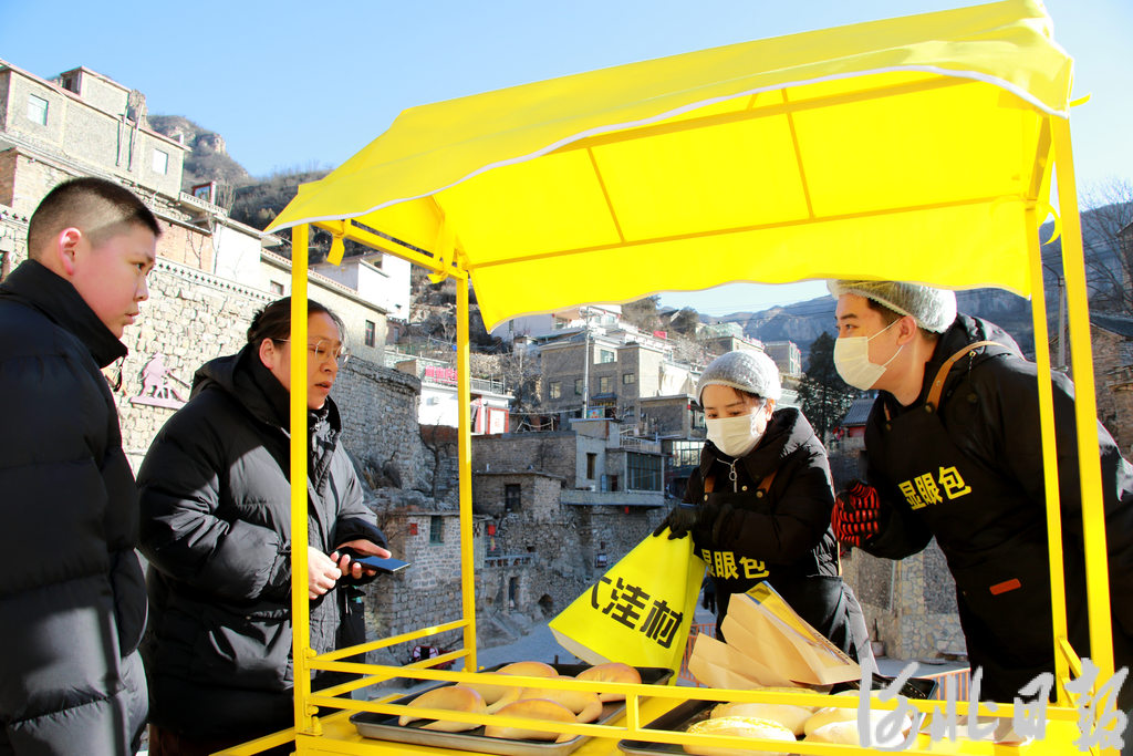 1月10日,游客在涉县大洼村选购新鲜出炉的窑烤面包。河北日报记者 陈正 摄