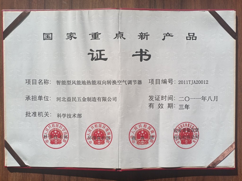 目前,公司的“忭度牌”地源热泵被评为河北省名牌产品。更值得一提的是,公司研发的“风能地热能双向转换空调调节器”拥有多项发明专利,填补了我国相关领域空白,被科技部认定为国家重点新产品。