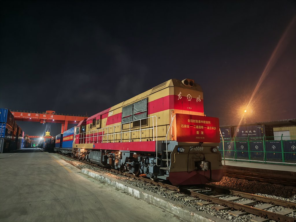 2025年12月5日凌晨,京津冀首列全程时刻表中欧班列从石家庄国际陆港驶出。余陈军摄