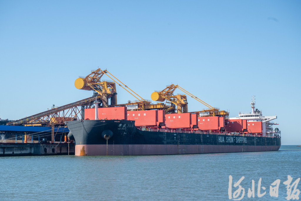 近日,货轮在秦皇岛港进行装卸作业。自《河北省港口污染防治条例》实施以来,秦皇岛港持续开展“翻、堆、取、装”全流程治理,绿色港口建设取得积极成效。河北日报记者 赵杰摄
