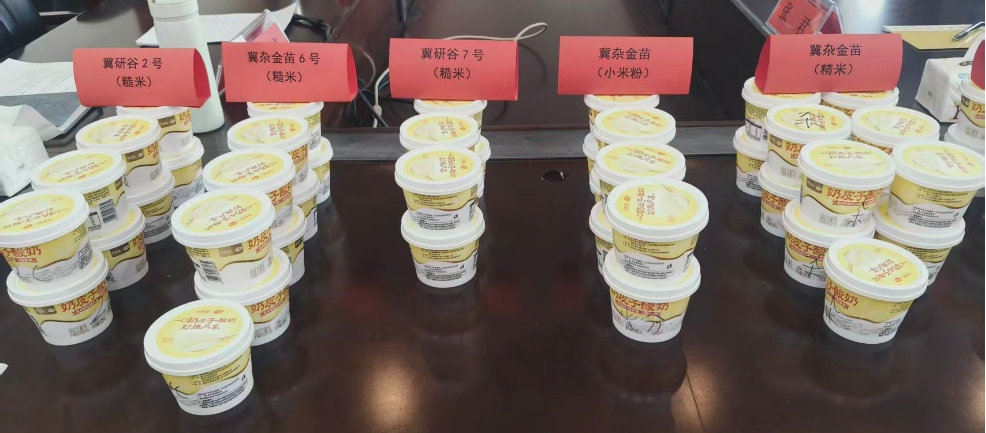 河北省农林科学院谷子研究所所长董立出席会议并作主旨发言,为会议研讨与产业发展方向提供了重要指导。国家谷子高粱产业体系夏谷育种岗位专家王根平深入分析了专用品种的选育优势与发展潜力;农机岗位专家杨志杰强调了全程机械化对于规模效益的重要性;加工岗位团队成员张爱霞则从加工端提出了技术创新的思路。河北省现代农业产业技术体系谷子产业创新团队经济岗位专家刘猛、优质夏谷岗位专家张婷、农机岗位专家焦海涛以及石家庄综合试验站站长贾剑麟,分别从市场分析、品种优化、技术推广等角度提供了支撑建议。加工岗位专家生庆海重点关注标准化体系与标杆产品打造,并提供了采用不同加工方式与品种制作的酸奶供与会代表品鉴。小米酸奶品鉴结果显示,采用不同加工方式与品种制作的酸奶存在风味差异,其中小米粉在口感塑造上展现出优势,而高油酸品种冀研谷7号则表现出更适合酸奶加工的品种特性,为未来定向育种与产品开发提供了有益参考。