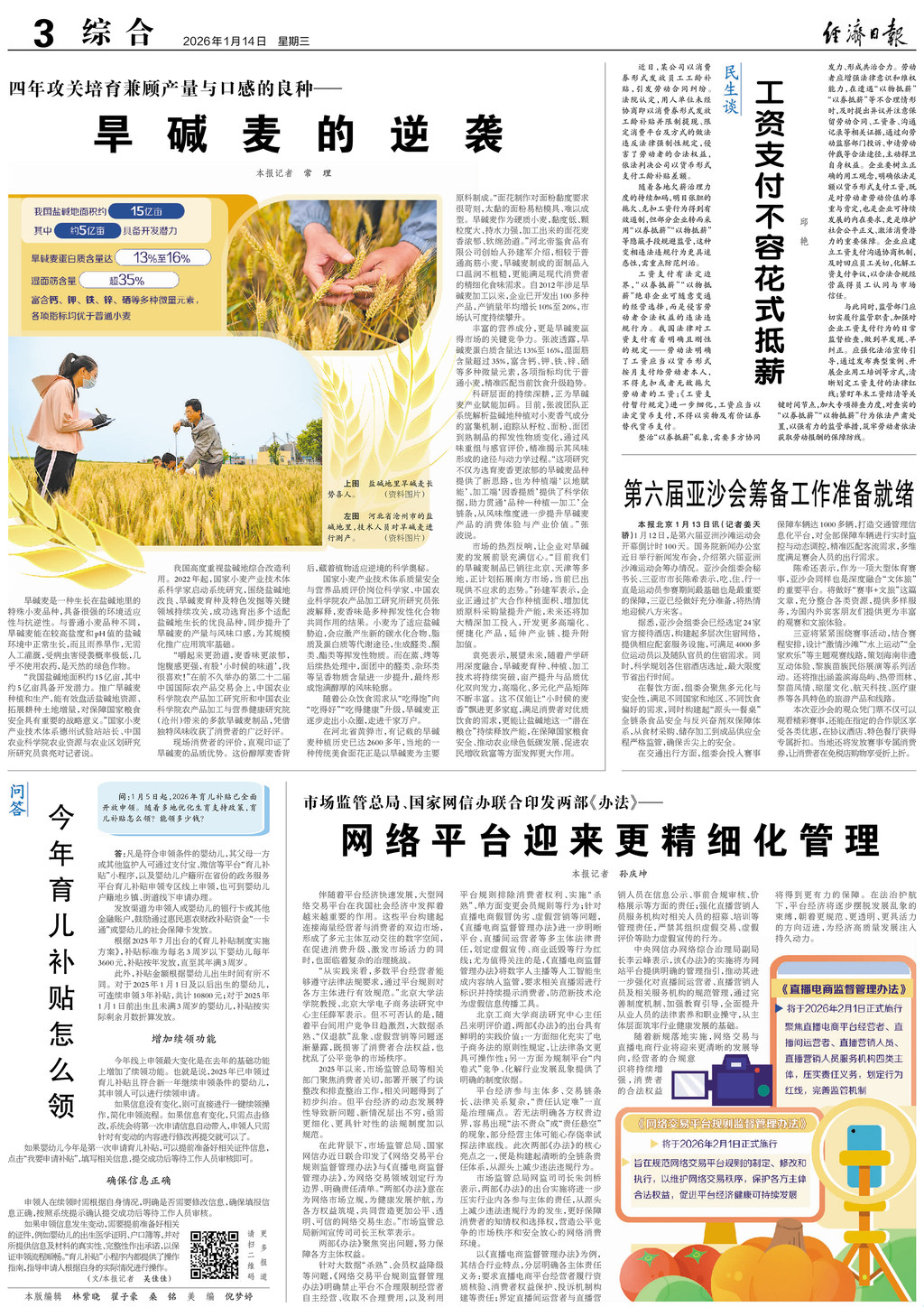 1月14日,《经济日报》刊登《旱碱麦的逆袭》。文中介绍,在前不久举办的第二十二届中国国际农产品交易会上,中国农业科学院农产品加工研究所和中国农业科学院农产品加工与营养健康研究院(沧州)带来的多款旱碱麦制品,凭借独特风味收获了消费者的广泛好评。河北黄骅旱碱麦种植历史悠久,以其为原料的面花等产品黏度适宜、麦香十足,市场认可度持续走高。旱碱麦蛋白质与微量元素含量均优于普通小麦,契合饮食升级趋势。科研团队全力助推全产业链提质增效,企业信心十足,积极扩大种植与加工规模,开发高端产品。随着产学研用深度融合,旱碱麦产业将在释放盐碱地潜力、保障粮食安全、促进农业绿色发展与农民增收等方面发挥更大作用。