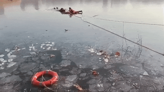 冰面破裂、人员落水的险情