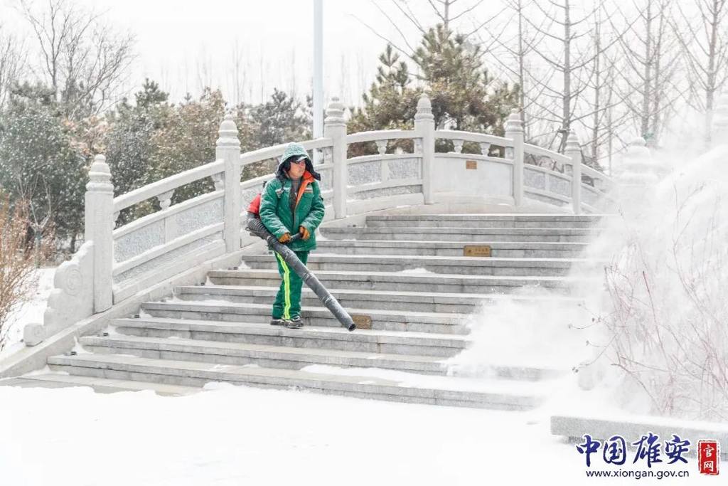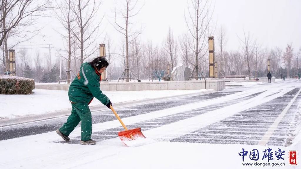 工作人员清扫积雪。中国雄安官网 牛思佳摄