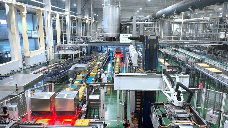 廊坊顶津食品有限公司生产车间内,自动化设备正在高速运转。河北日报记者 刘英摄(资料图片)
