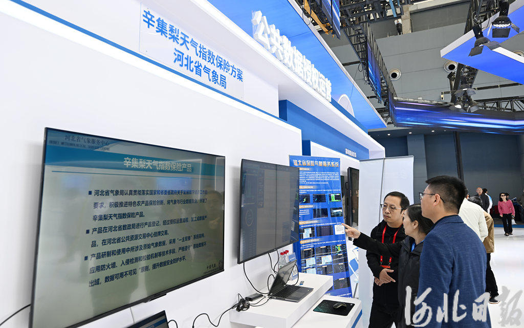 在2025中国国际数字经济博览会展区,参观嘉宾现场了解辛集梨天气指数保险产品。(河北日报资料片)河北日报记者史晟全摄