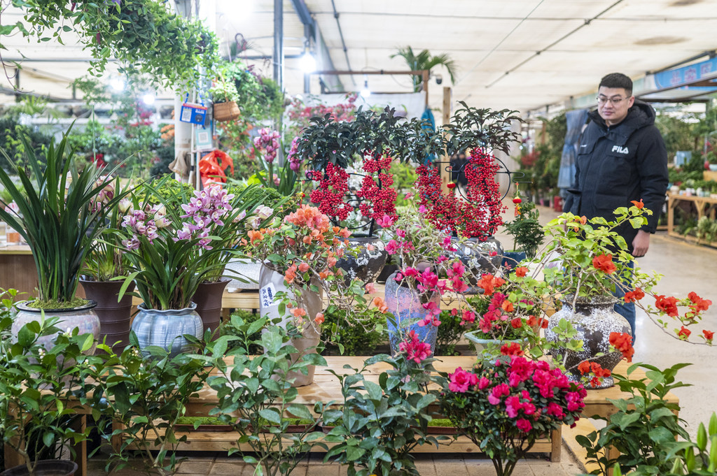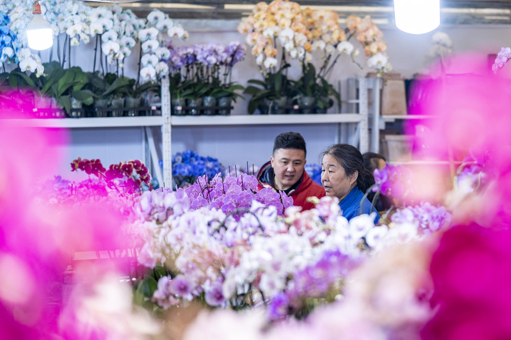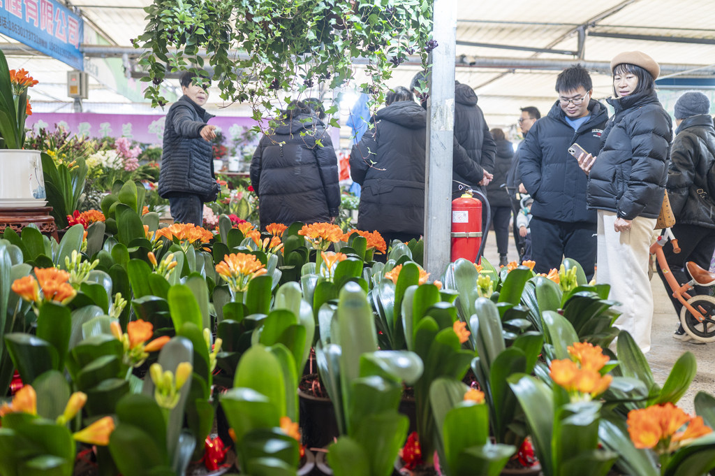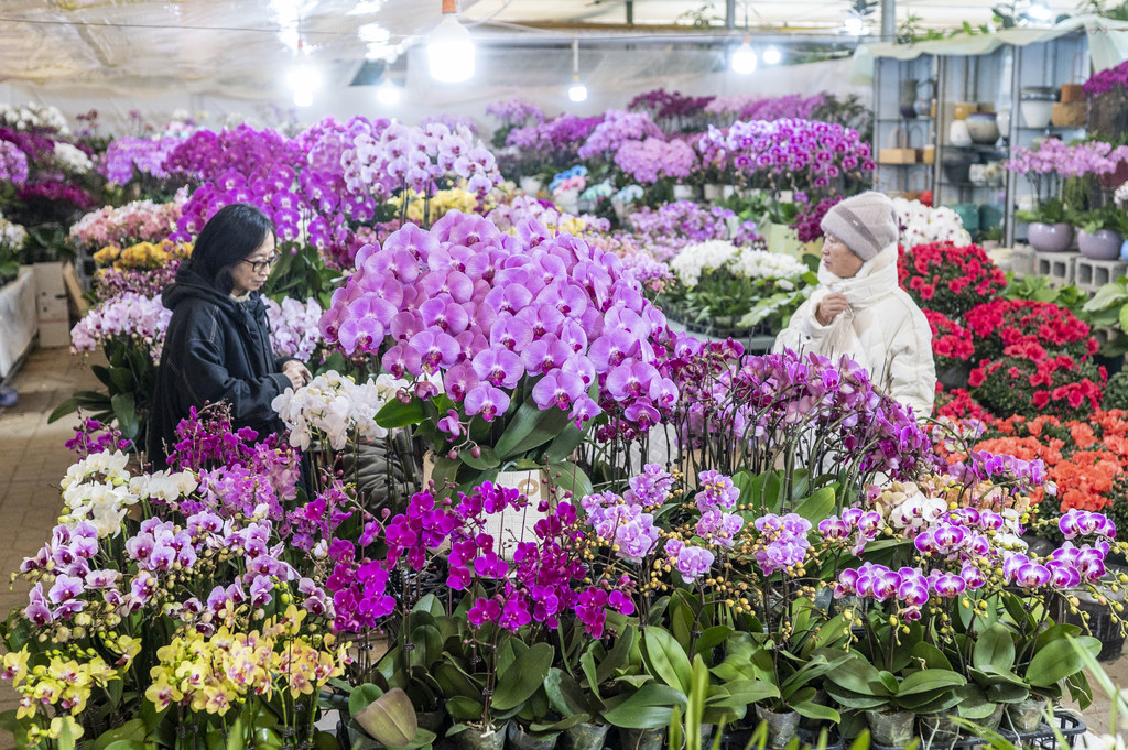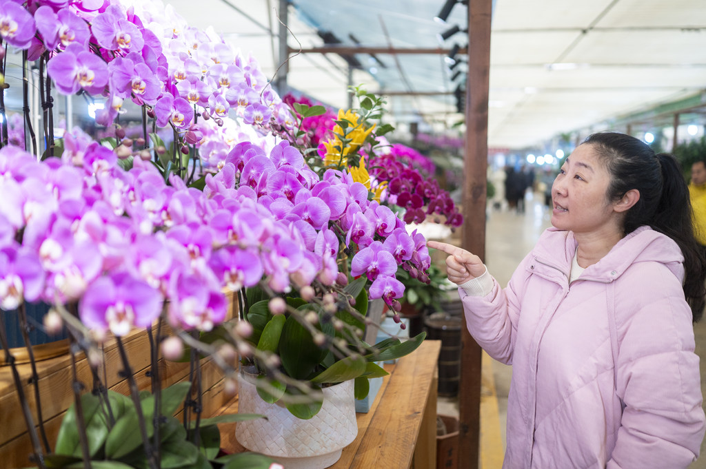 1月19日,消费者在石家庄市肖家营花卉基地选购鲜花。