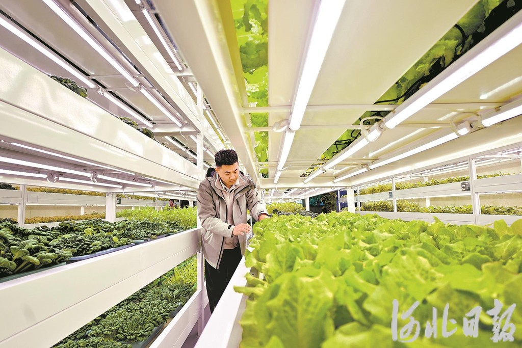 冀州现代农业融合创新基地的植物工厂内,工作人员在查看蔬菜长势。河北日报资料片