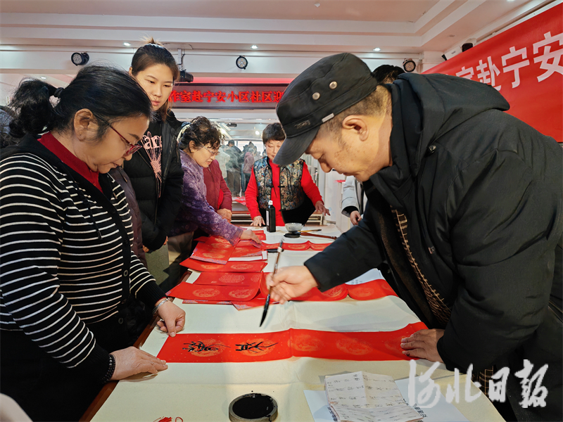 河北日报客户端讯(陈璐)1月19日,石家庄市新华区新华路街道宁安小区社区新时代文明实践站内墨香四溢,中国书法家协会第七届副主席、河北省书法家协会主席刘金凯率领文化名家工作室成员走进社区,开展“迎新春 送福字”文化惠民活动。