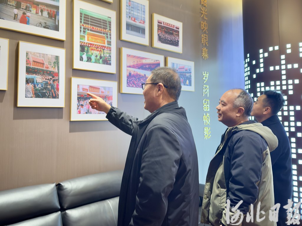 1月16日,石家庄大剧院四楼的霞光影院内,市民正在观看墙上的老照片。河北日报客户端见习记者侯淼摄