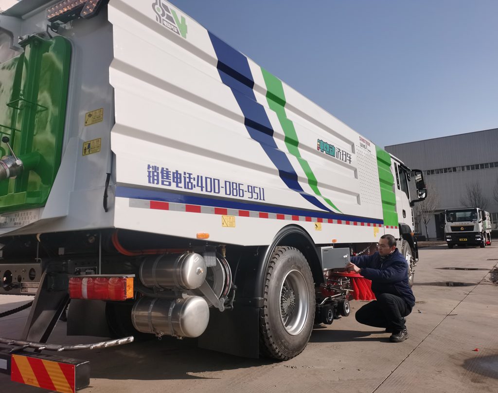 过去,燃油环卫车清洁街道得配备两种车:洗扫车和吸尘车。洗扫车带水作业,主要在春、夏、秋季使用。冬季天气寒冷时,为避免车辆管道冻结、水箱损害,转而使用干式作业的吸尘车。
