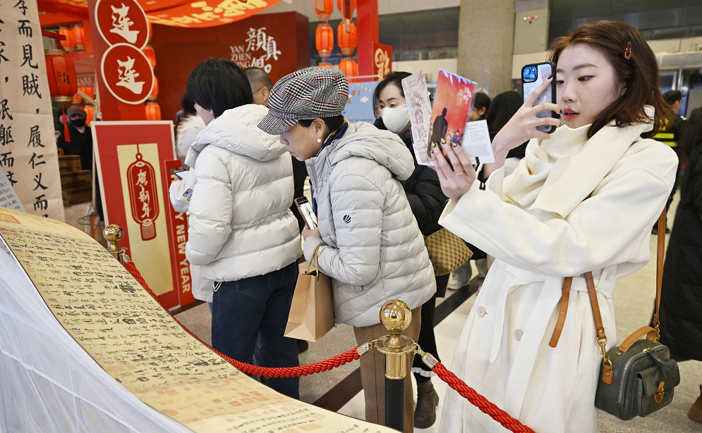 1月14日,舞剧《颜真卿》演出前,观众在场外拍照留念。河北日报记者 贾恒摄