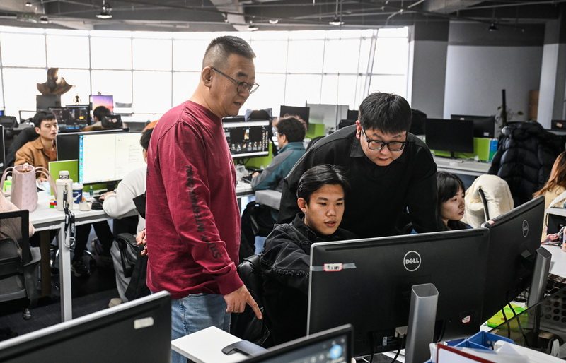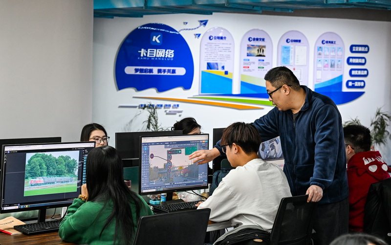 1月10日,张家口数字文创产业基地,张家口卡目网络科技有限公司工作人员在讨论数据标注细节。
