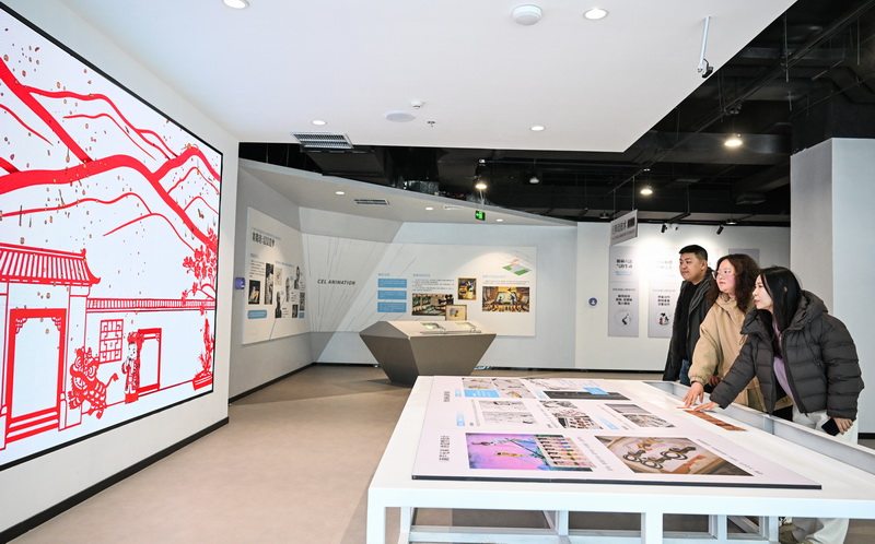 1月12日,游客在张家口数字文创产业基地内的数字动漫研学基地体验动漫项目。