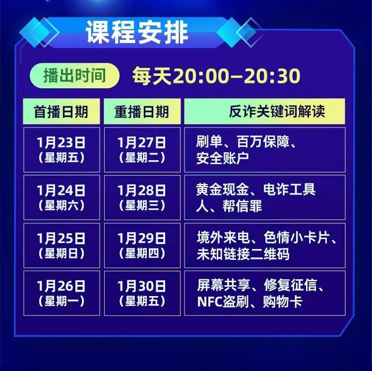 据了解,1月23日至30日晚8时,抖音平台搜索“河北公安”,每晚将开设30分钟反诈课,通过4期精品课程,聚焦群众最易中招的诈骗类型,围绕关键词拆解、真实案例剖析等传授防骗技巧,帮助大家看清骗局、远离陷阱。此外,完整观看视频后,还可参加平台抽奖活动,有机会获得反诈小熊。