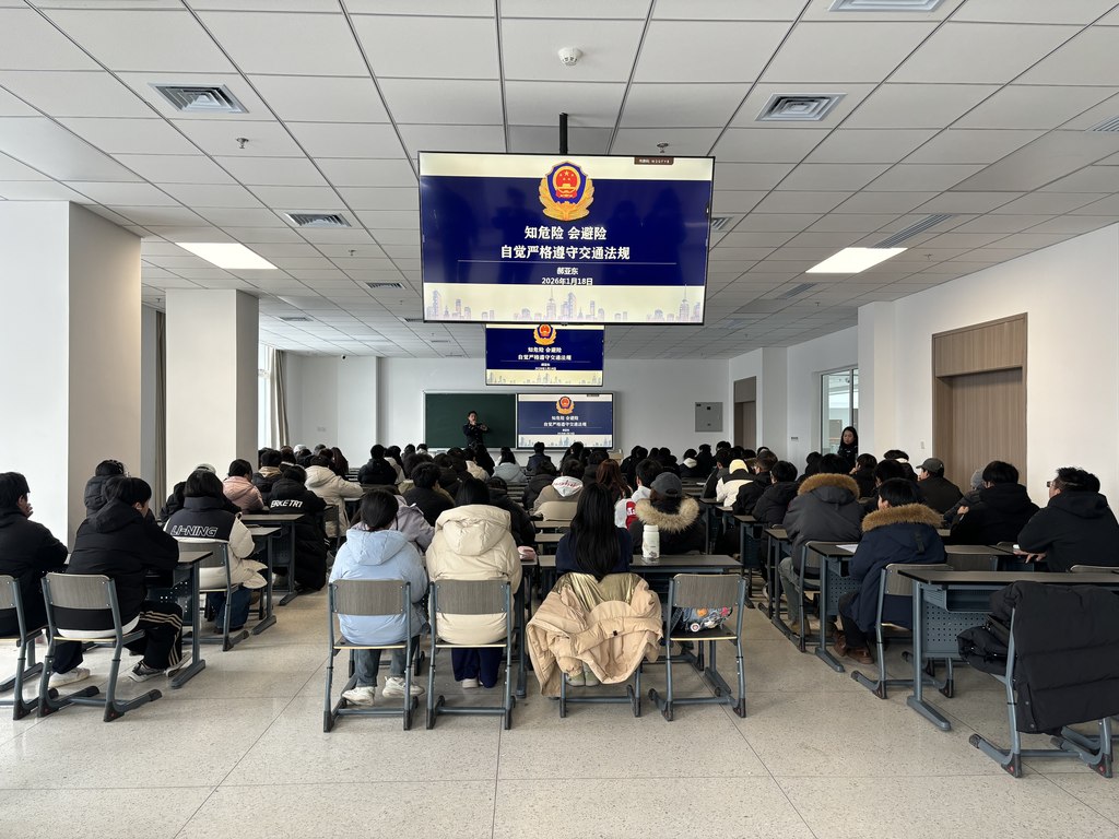 “每一起交通事故的背后,都是一个家庭的破碎。”宣讲现场,民警郝亚东结合近年辖区内发生的典型事故案例,向同学们介绍了“超速行驶、疲劳驾驶、强行变道、分心驾驶”等违法行为带来的危害。同时,通过以案释法,细致解读每类违法行为的法律后果,更结合大学生群体假期自驾、乘车出行的特点,剖析了“抢黄灯”“车窗抛物”“未系安全带”等易被忽视的细节隐患,让大家深刻认识到“小习惯关乎大安全”。