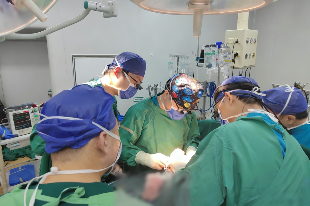 图为近日拍摄的北京安贞医院李海洋教授团队与黄骅市人民医院医护团队开展心脏不停跳冠状动脉搭桥术。黄骅市人民医院供图