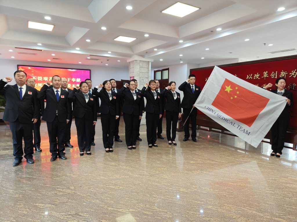 1月22日上午,河北省第17批援尼泊尔中国医疗队行前宣誓。河北日报记者赵泽众摄