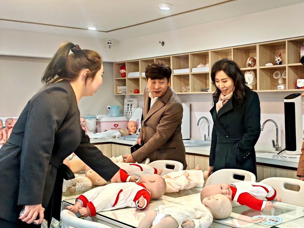 日前,省政协委员、承德市妇联主席李坚(右二)在天津弗丽佳母婴护理服务有限公司走访调研。白凤娟摄