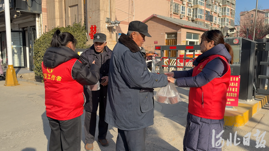 在街头巷尾,社区工作人员为坚守岗位的环卫工人、门卫等户外劳动者递上热粥,轻声送上祝福。一碗碗温热米粥,驱散了户外劳动者身上的寒意。环卫工人捧着热粥,连连向工作人员道谢。