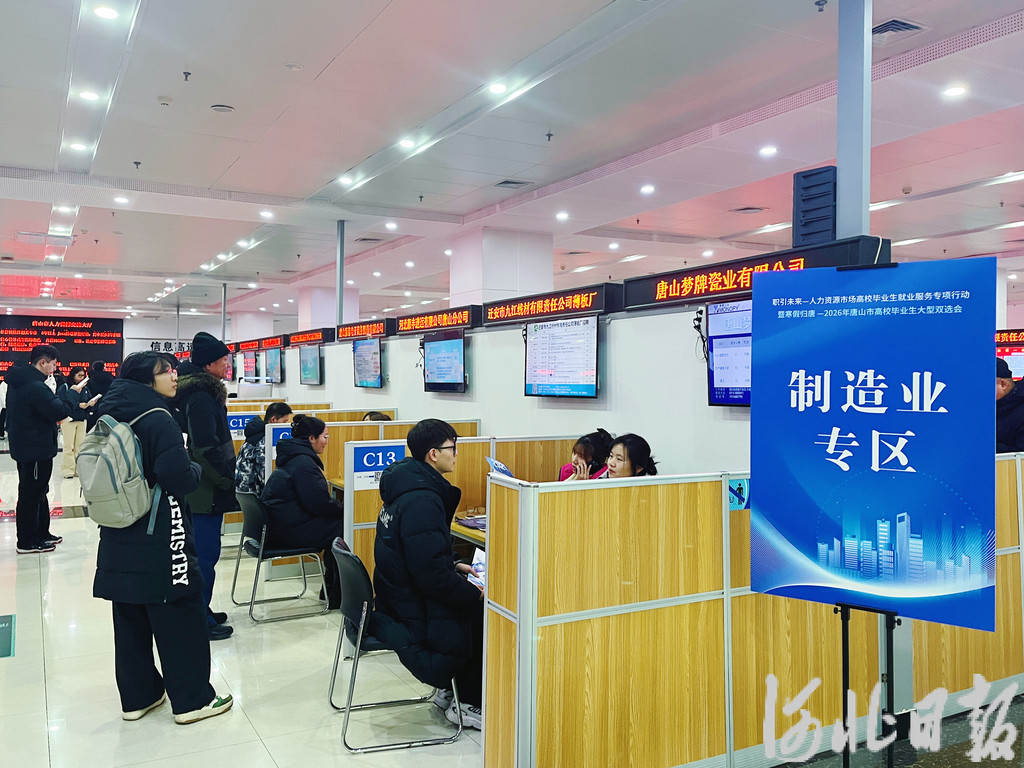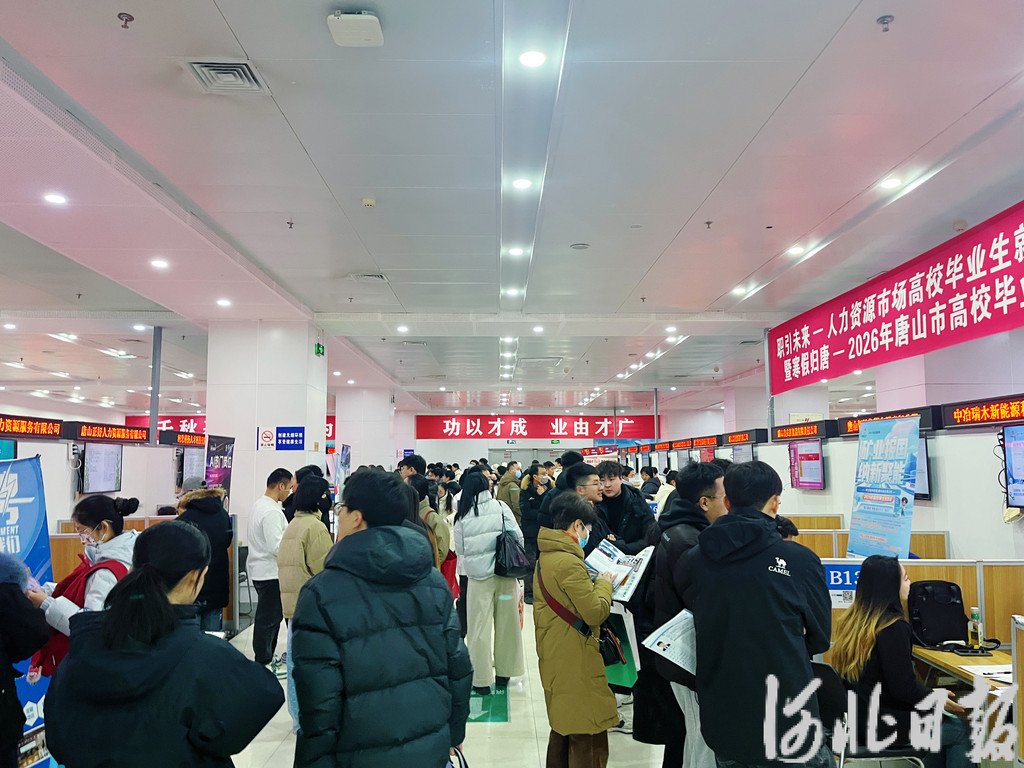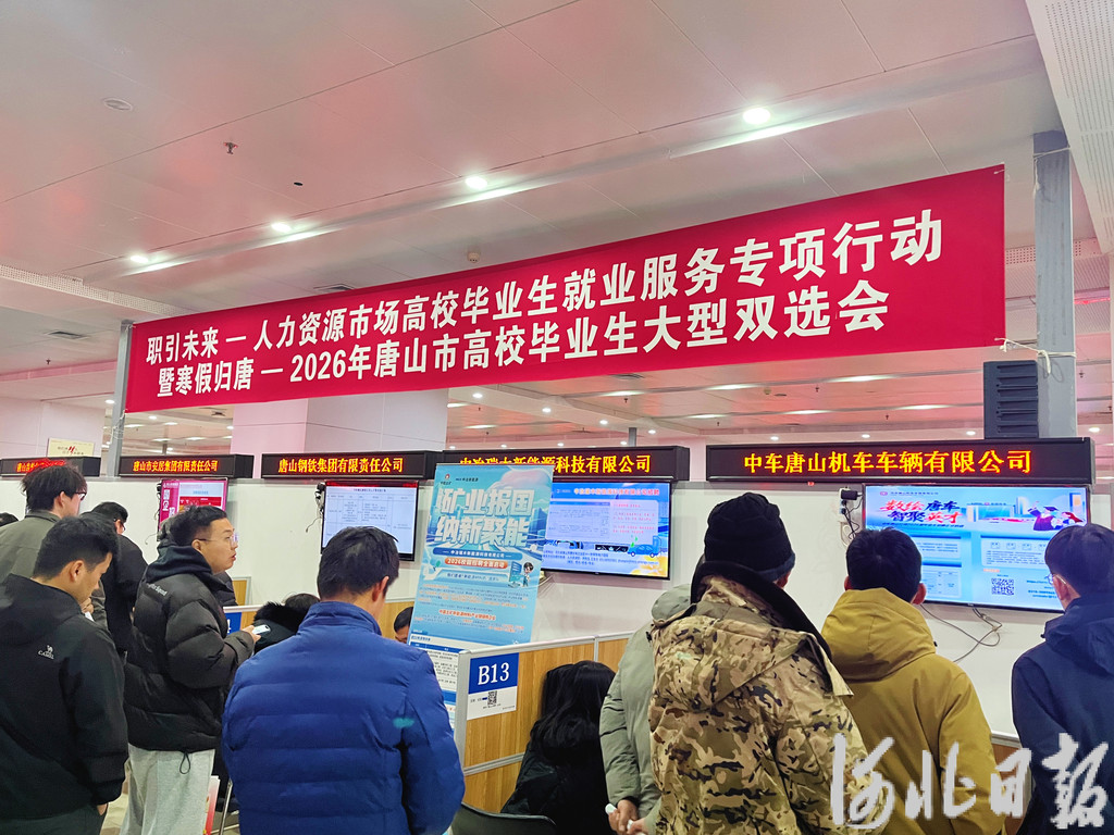 河北日报客户端讯(见习记者安洋)1月22日,职引未来--人力资源市场高校毕业生就业服务专项行动暨寒假归唐--2026年唐山市高校毕业生大型双选会在唐山市民服务中心举办,106家用人单位到会揽才,发布岗位信息1480个,1500余名求职者入场交流洽谈,现场达成意向310人次。