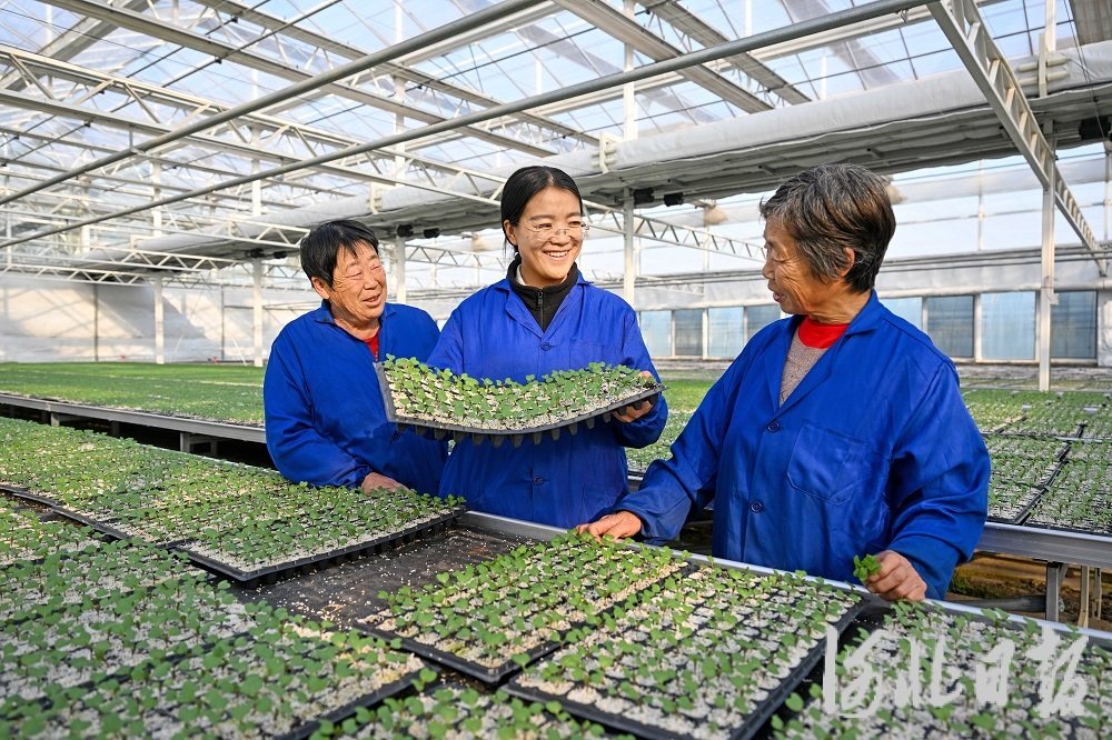 1月19日,张莎莎(中)在向农户介绍育苗经验,并征求意见建议。河北日报记者张昊摄