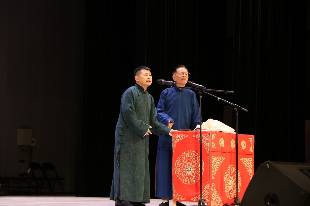 何沄伟、崔琦表演相声《卖估衣》。