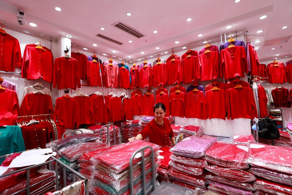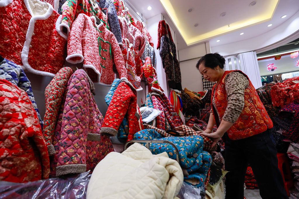 永清县云裳小镇内,商户正在打理新年购物季货品。庞趁友摄