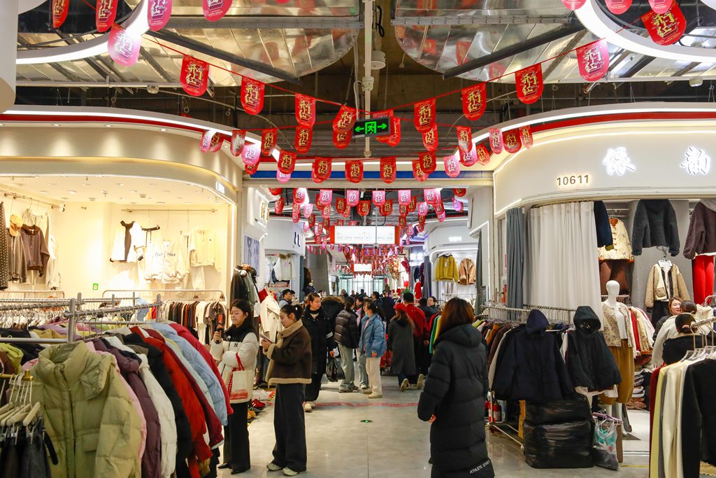走进云裳小镇,很多商户门店已陆续被年货节的节日红装点缀其间,暖意融融。货架上,新款冬装整齐陈列,羽绒服、大衣、针织衫等品类齐全,从简约基础款到潮流设计款,涵盖不同年龄段与风格需求。商户们纷纷亮出“上新特惠”“满减叠加”等福利,吸引不少消费者驻足挑选。