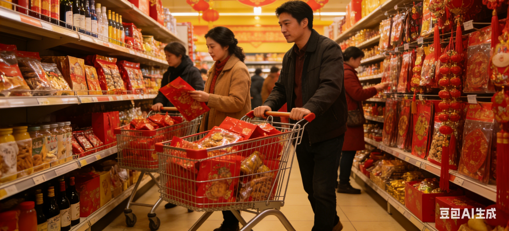 春节即将到来,市民走入商场、集市采购春联、食品等年货,准备过一个富足的新年。