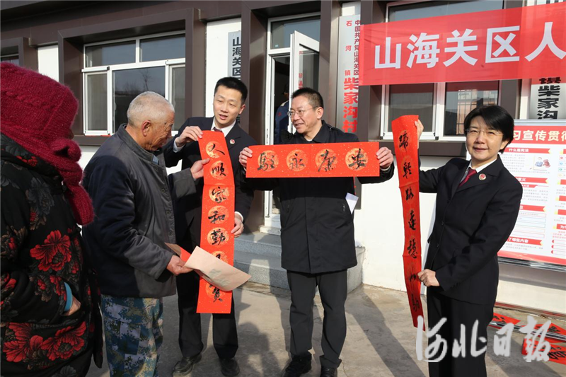河北日报客户端讯(王聪敏、马天镜、王茜)1月26日,秦皇岛市山海关区人民检察院联合区文联走进石河镇柴家沟村,开展第七届春联赠送活动,为村民送去新春祝福与法治关怀。