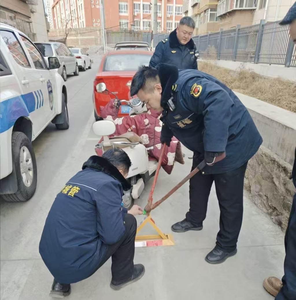 经核实发现小区内存在个别业主通过安装地锁、用铁链固定废旧非机动车、堆放轮胎杂物等方式,长期圈占公共区域作为私人停车位。执法人员依法对违规设置的地锁、杂物进行集中清理,现场共拆除地锁3个,清理废旧非机动车20余辆、轮胎等杂物35个。