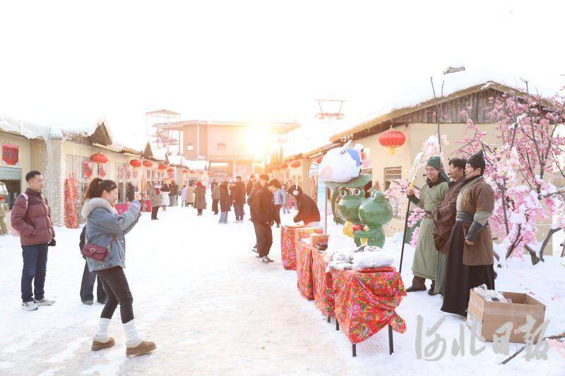 此外,复刻原生风貌的东北民俗雪乡也充满乡土意趣。70余间特色木屋错落排布,门楣悬挂起金灿灿的玉米、红彤彤的大灯笼。雪乡里美食云集,热气腾腾的铁锅炖、各地特色小吃让游客大饱口福。穿越感十足的NPC则与游客互动,更让雪乡充满欢声笑语。