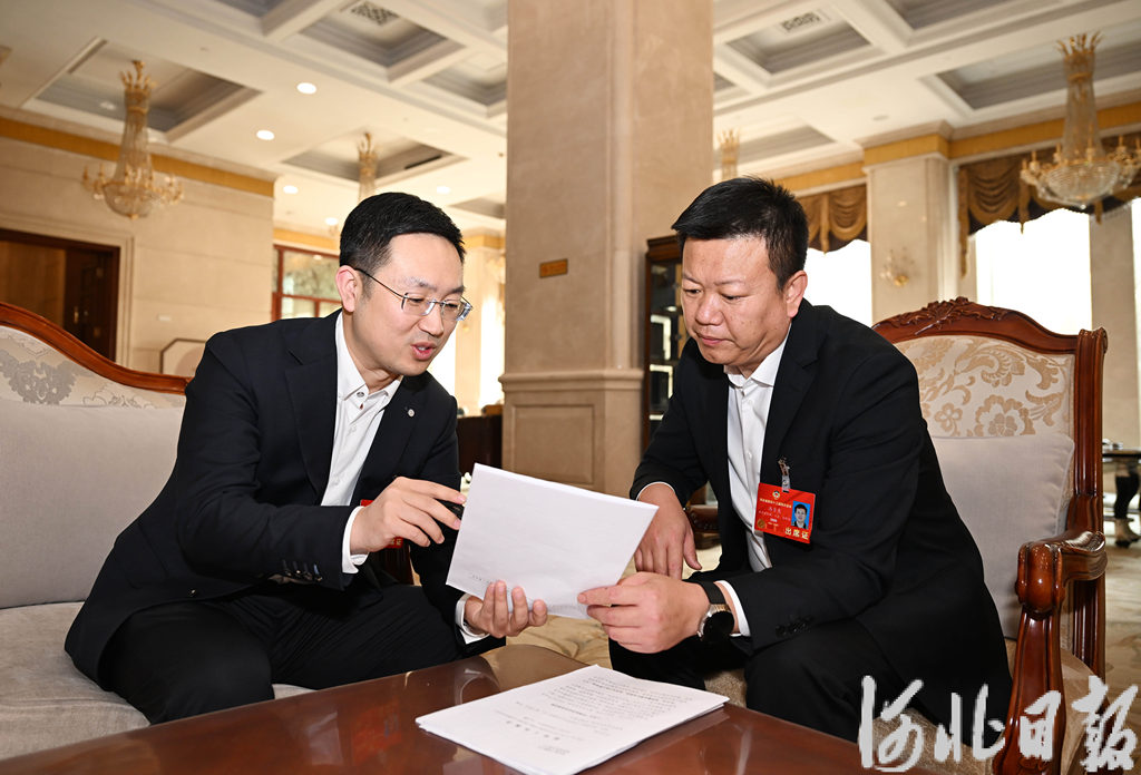 1月26日,王孟昭委员(左)和冯月亮委员围绕“共享智造”话题展开深入交流。河北日报记者史晟全摄