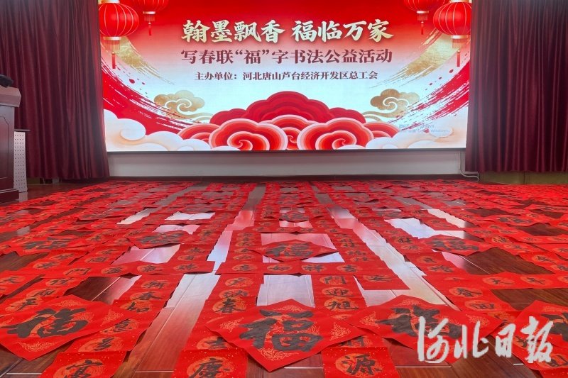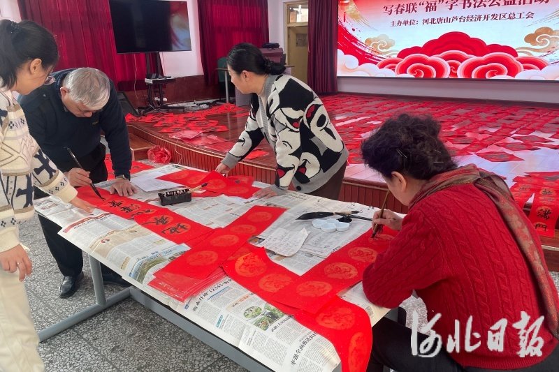 河北日报客户端讯(吴玉杰)1月28日上午,河北省唐山市芦台经济开发区总工会(简称“唐山芦台总工会”)举办“翰墨飘香 福临万家”书法公益活动,组织辖区书法爱好者现场挥毫泼墨,为广大职工群众书写春联、福字,将新春的美好祝福与工会的暖心关怀送至职工身边。