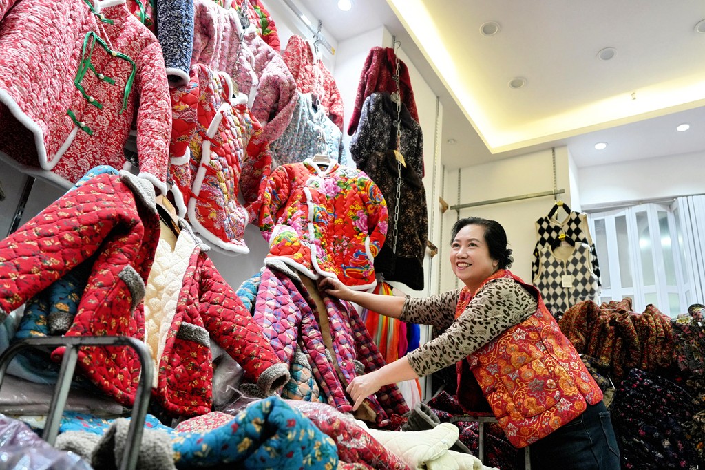 1月15日,永清县云裳小镇商户在整理货品。