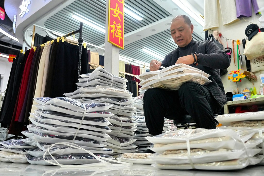 1月15日,永清县云裳小镇商户在整理即将发货的服装。