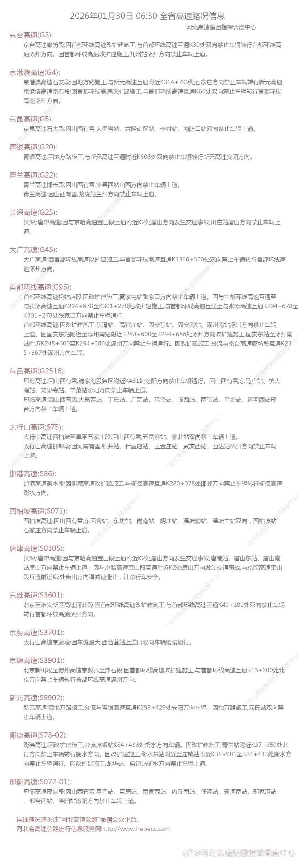 河北省气象台2026年01月30日05时发布天气预报