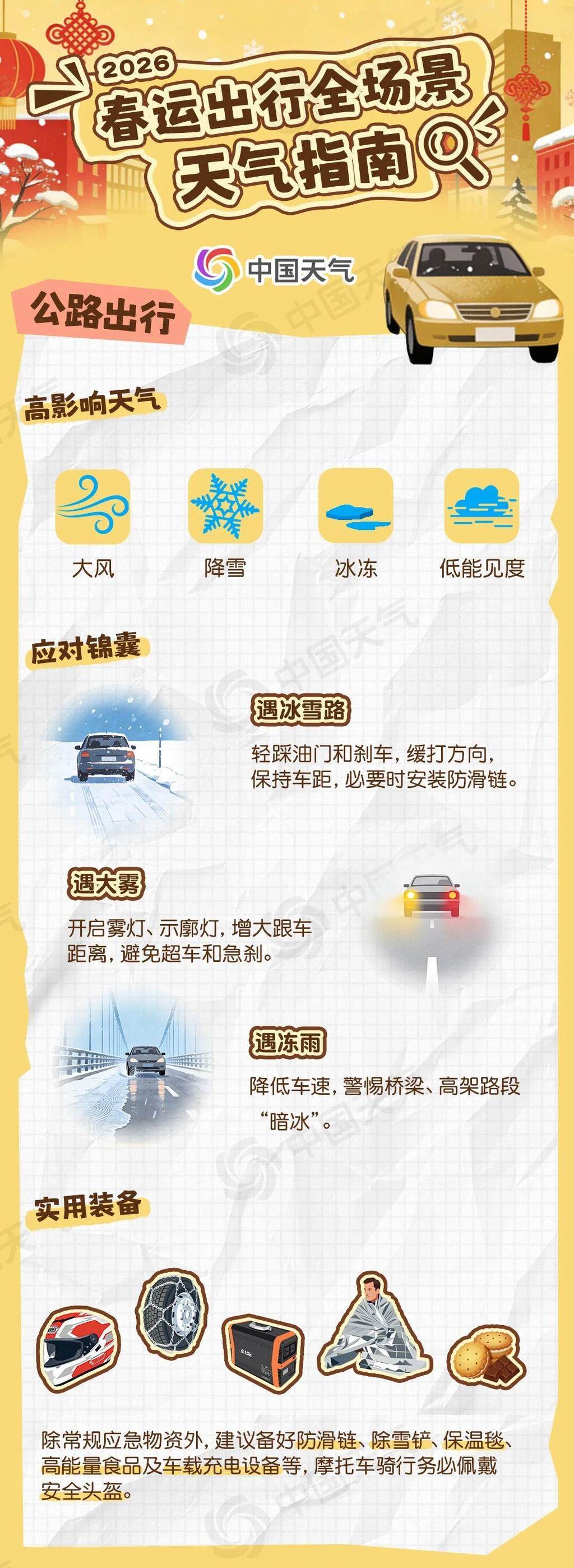 一年一度的春运大幕即将开启,无论你选择公路、铁路、航空、水路哪一种方式归乡或远行,天气都是影响旅途顺畅与安全的重要因素之一。