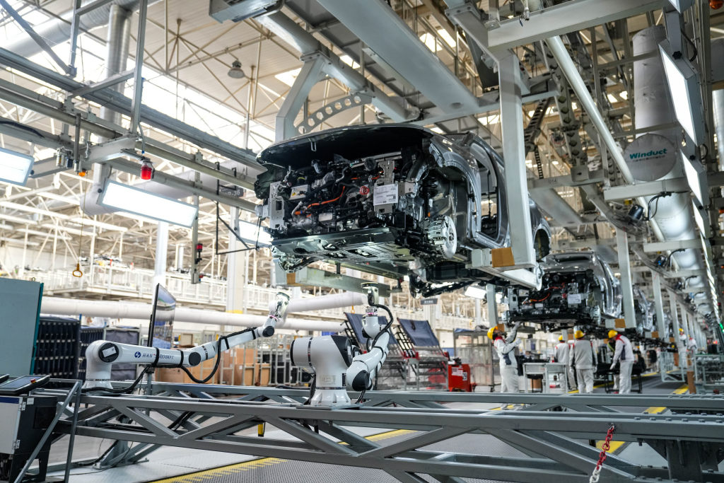 1月20日,长城汽车徐水分公司焊装车间,机器人在进行车身焊接组装。