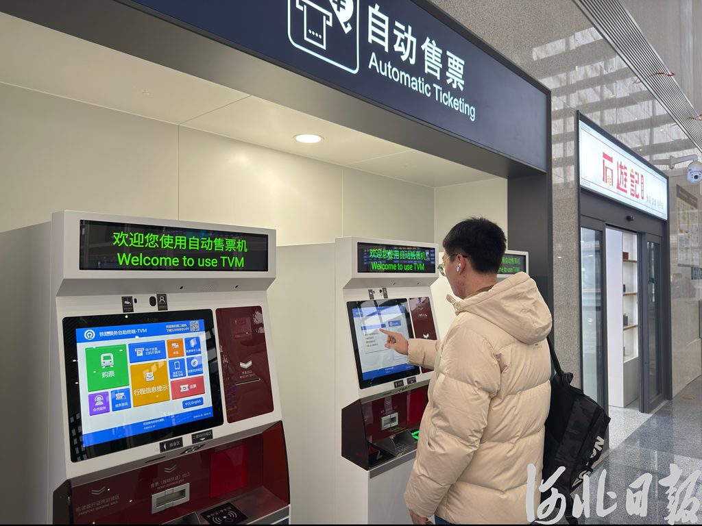 1月26日,旅客在石家庄北站利用自动售票机购票。见习记者侯淼摄